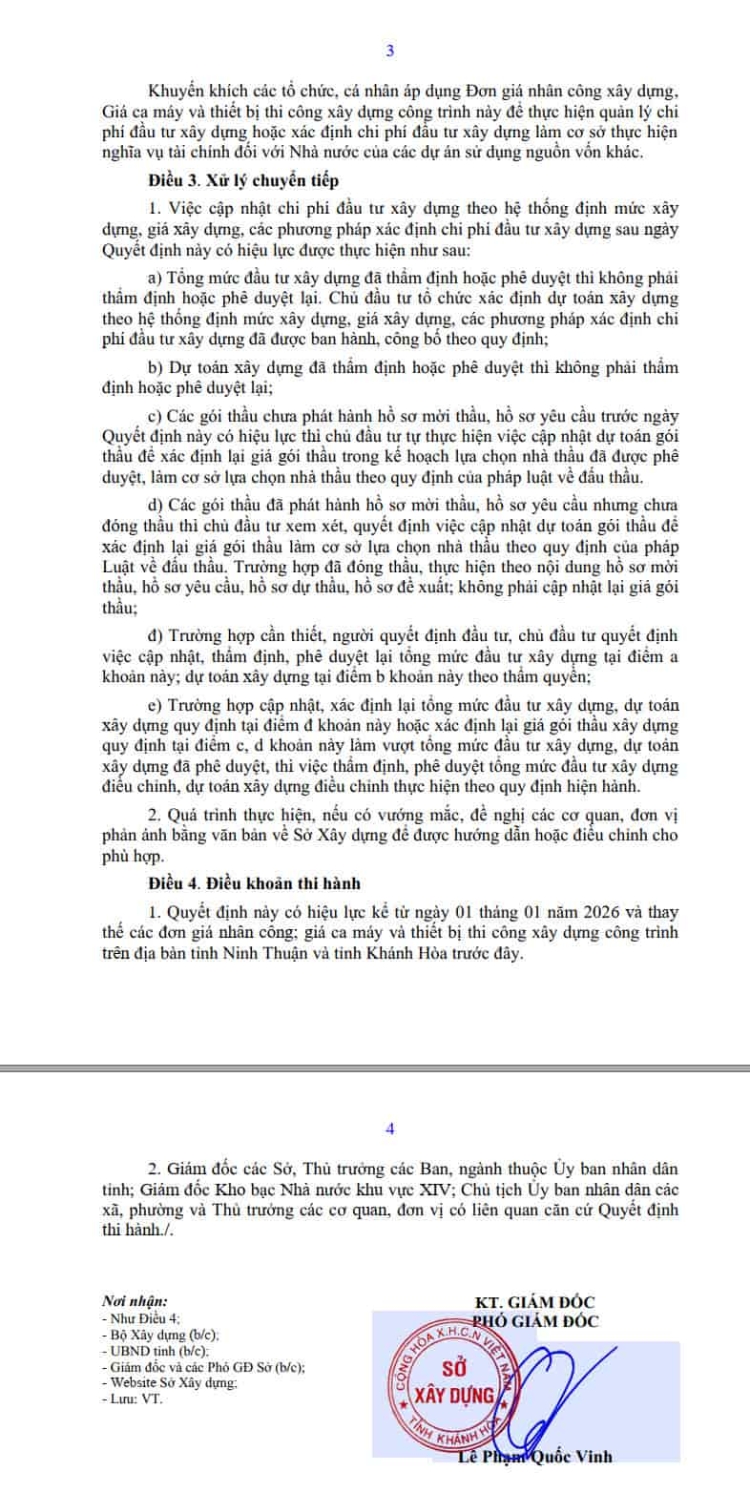 Áp dụng từ ngày 01/01/2026 và thay thế các đơn giá nhân công; giá ca máy và thiết bị thi công xây dựng công trình trên địa bàn tỉnh Ninh Thuận và tỉnh Khánh Hòa trước đây.